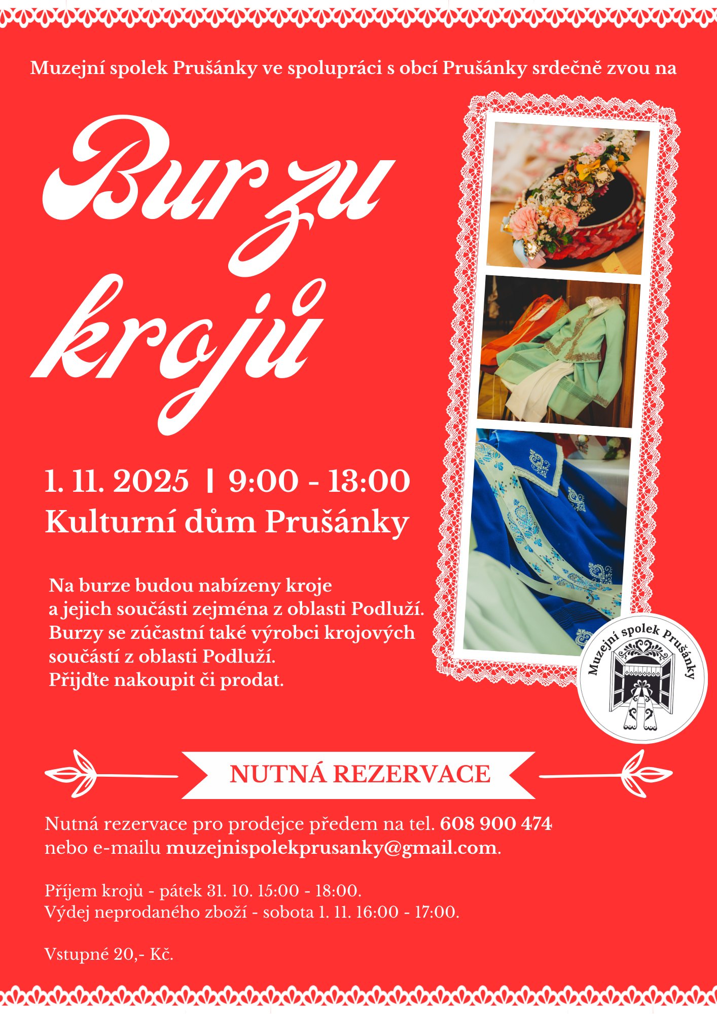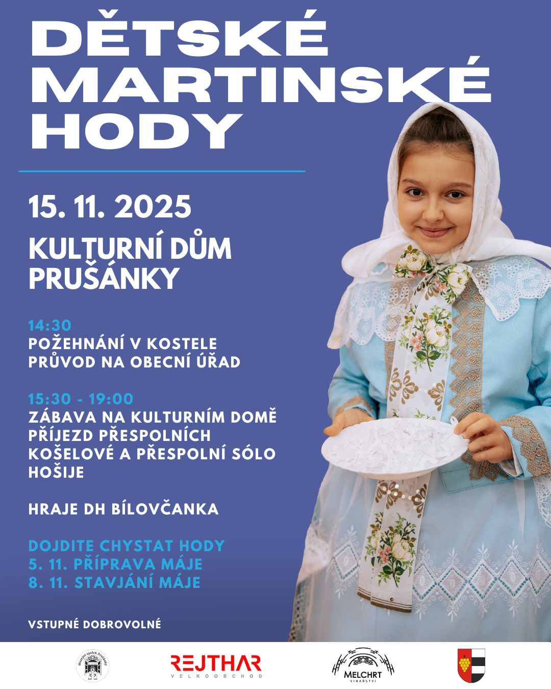 Přihlášky posílejte nejpozději do 20. 10. 2024 na kultura@obecprusanky.cz. A protože chceme být co nejšetrnější k životnímu prostředí, prosíme, abyste si přinesli vlastní lžíce, misky a hrnečky. Na akci budeme používat vratné kelímky. Záloha 50 Kč.